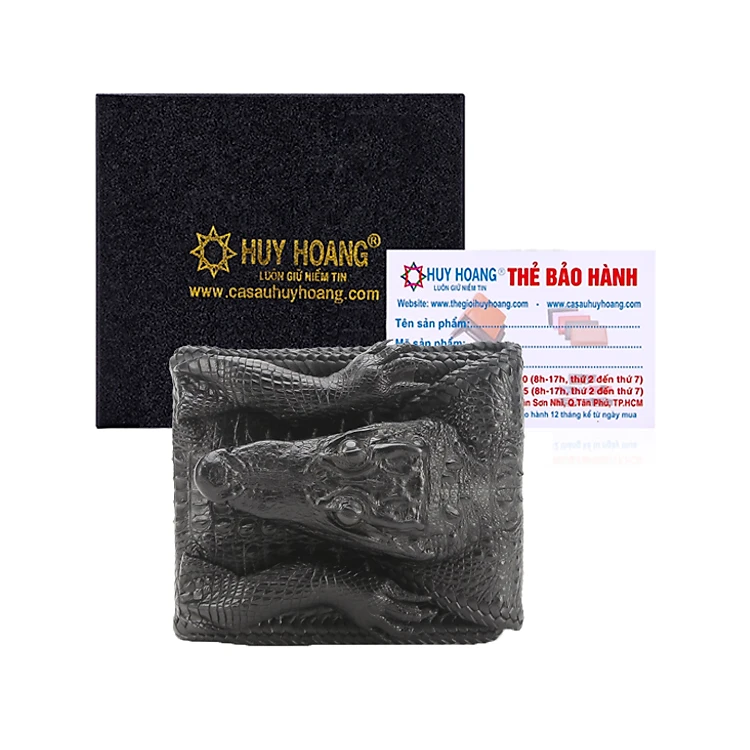 HJ2270 - Bóp nam da cá sấu Huy Hoàng nguyên con vip màu đen
