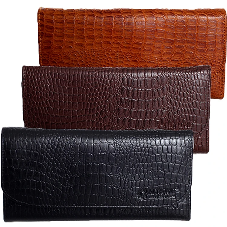 HJ3108-09-10 - Bóp nữ vân cá sấu Huy Hoàng bấm nút màu da, đen, nâu