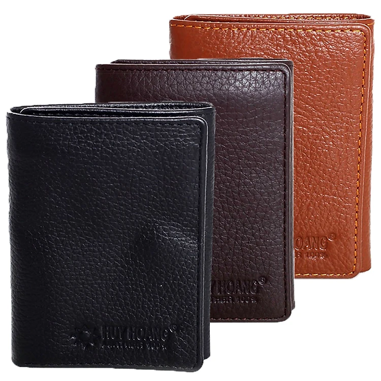 HJ3136-37-38 - Bóp nữ da bò Huy Hoàng 3 gấp loại nhỏ màu da, đen, nâu