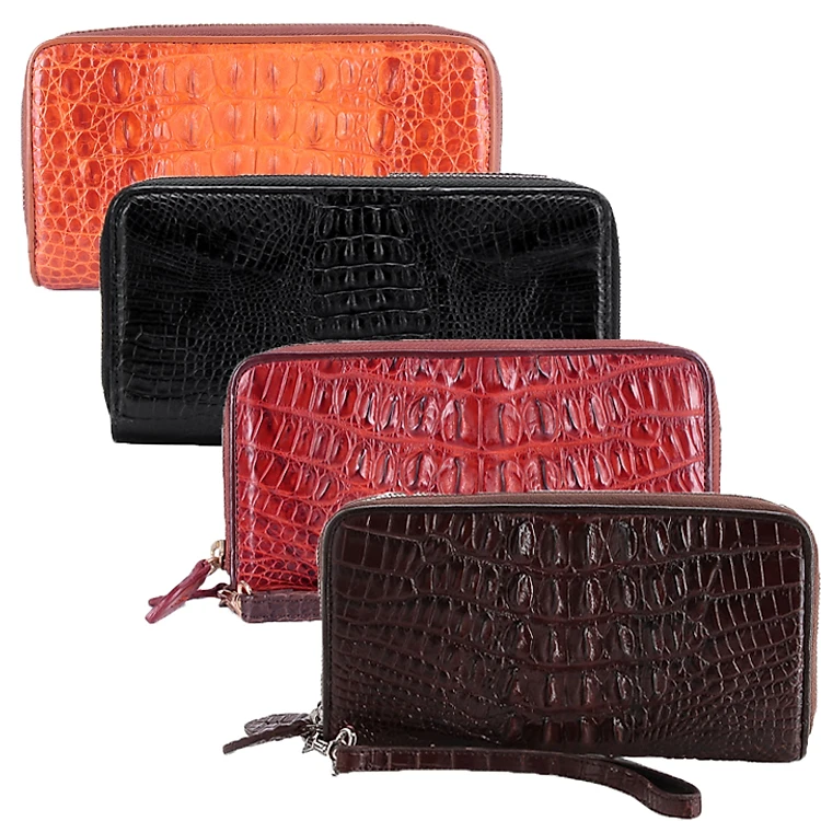 HJ3208-09-10-16 - Bóp da cá sấu 2 khóa gai vàng, đen, nâu đỏ, nâu đất