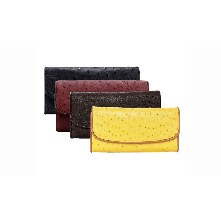 HJ3403-04-05-06 - Bóp da đà điểu 3 gấp nâu đỏ, vàng, đen, nâu đất