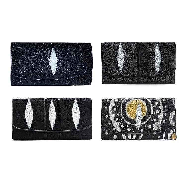 HJ3501-02-03-04 - Ví nữ da cá đuối Huy Hoàng 1 sọc màu trắng đen