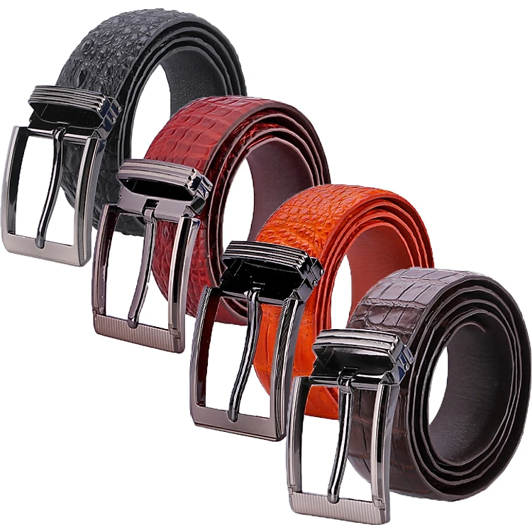 HJ4228-29-30-31 - Dây nịt nam da cá sấu Huy Hoàng gai bụng đầu kim bản lớn màu Đen, nâu đỏ, vàng bò, nâu đất
