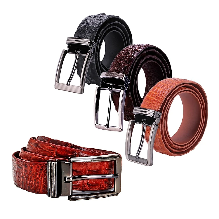 HJ4709-10-11-12 - Dây nịt nam da cá sấu gai lưng đầu kim bản lớn màu đen, nâu đất, nâu đỏ, vàng