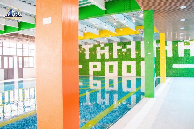 Bể bơi được thiết kế sang trọng, rộng rãi, có phòng bơi dành riêng cho trẻ em và người lớn cùng nhiều dịch vụ chăm sóc khác. Hệ thống đèn chiếu sáng hiện đại cung cấp đủ lượng ánh sáng, phòng thay đồ đảm bảo tiện lợi cho mọi khách hàng. Đặc biệt, nguồn nước mặn qua quá trình xử lý, sử dụng công nghệ điện phân muối, không chứa hoá chất, hết sức an toàn cho sức khoẻ.