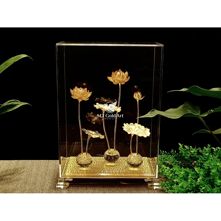 Hồ hoa sen dát vàng (29x16x39cm) MT Gold Art- Hàng chính hãng, trang trí nhà cửa, quà tặng dành cho sếp, đối tác, khách hàng, sự kiện.