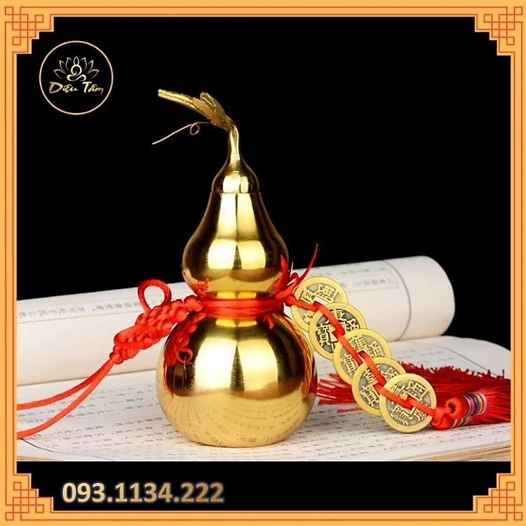 Hồ lô phong thuỷ bằng đồng sức khoẻ trường thọ, hút tài lộc tặng dây xu ngũ đế đồng tâm kết
