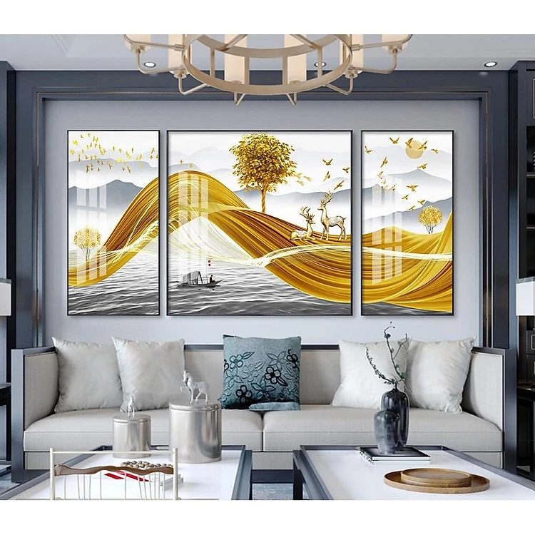 HỖ TRỢ SHIP-Siêu khuyến mại bộ ba tranh tráng gương cao cấp hươu trên dải ngân hà tài lộc