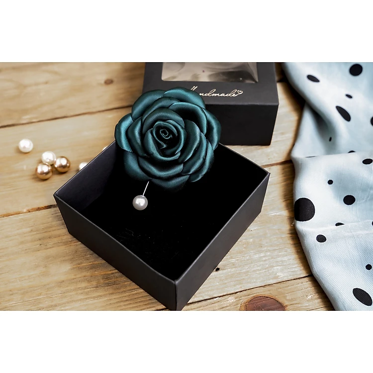 Hoa cài áo Handmade Vải lụa Hoa hồng channel - Màu xanh bộ đội
