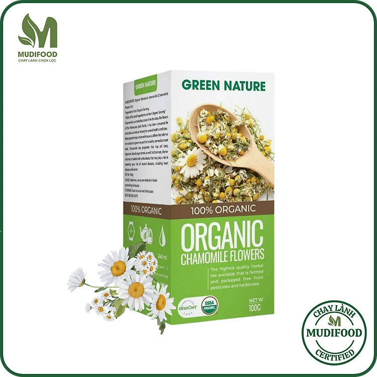 Hoa Cúc La Mã Chamomile Nguyên Bông Hữu Cơ Green Nature 100g - Thanh Nhiệt, Mát Gan, Cải Thiện Giấc Ngủ, Giúp Thư Giãn & Làm Đẹp Da, Tốt Cho Tim Mạch, Giảm Cân, Eatclean, Healthy