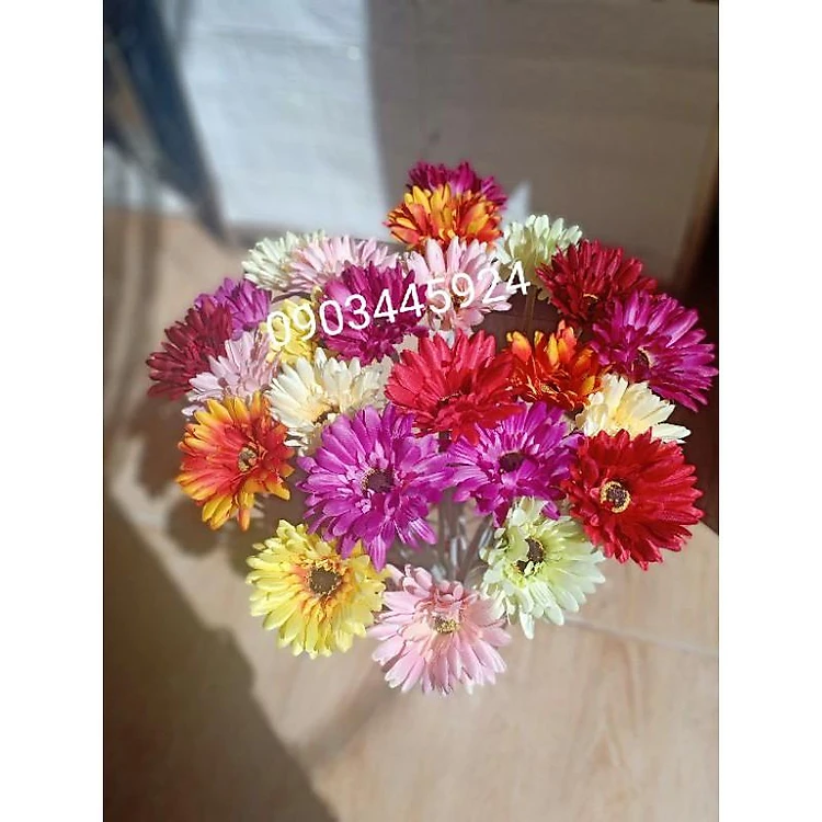 * Hoa đồng tiền 1 bông chất liệu vải nhiều lớp,thân nhựa phủ nhung bạc,có màu cành sẽ k phủ,trong bọc lõi thép.