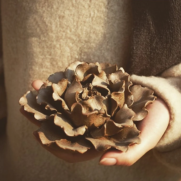 Hoa gốm thủ công cắm nhang trầm hoặc để trầm nụ DDT27 hoa nâu