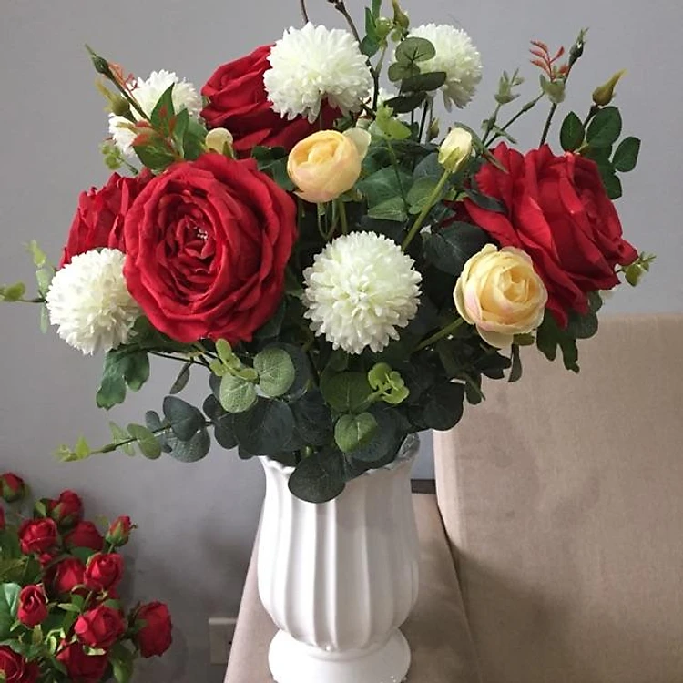 Hoa lụa - Set hoa hồng + cẩm tú cầu + mao lương