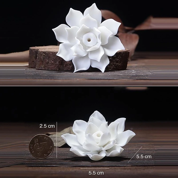Hoa sen gốm trắng cắm nhang và trầm nụ