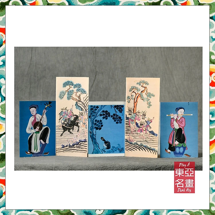 hoa ta - Combo 5 Thiệp Tranh Dân Gian Việt Nam - Xen Kẽ Size - Đông Á Danh Hoạ