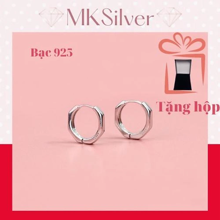 Hoa tai bạc ý, bông tai bạc unisex kiểu hình học lục giác xi bạch kim phong cách đơn giản năng động.