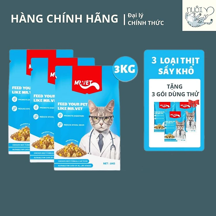 Tặng gói dùng thử - Hạt cho mèo Mr.Vet - Petour Singapore - Hạt full topping hơn 30% đạm - Túi seal 1 kg
