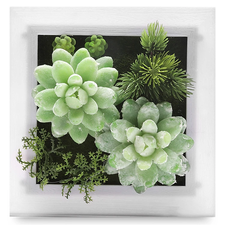 Bên cạnh đó, hoa được bố cục ở giữa khung bọc ngoài hình vuông được sơn màu trắng tinh tế hài hòa với các loại cây có bên trong khung hình.