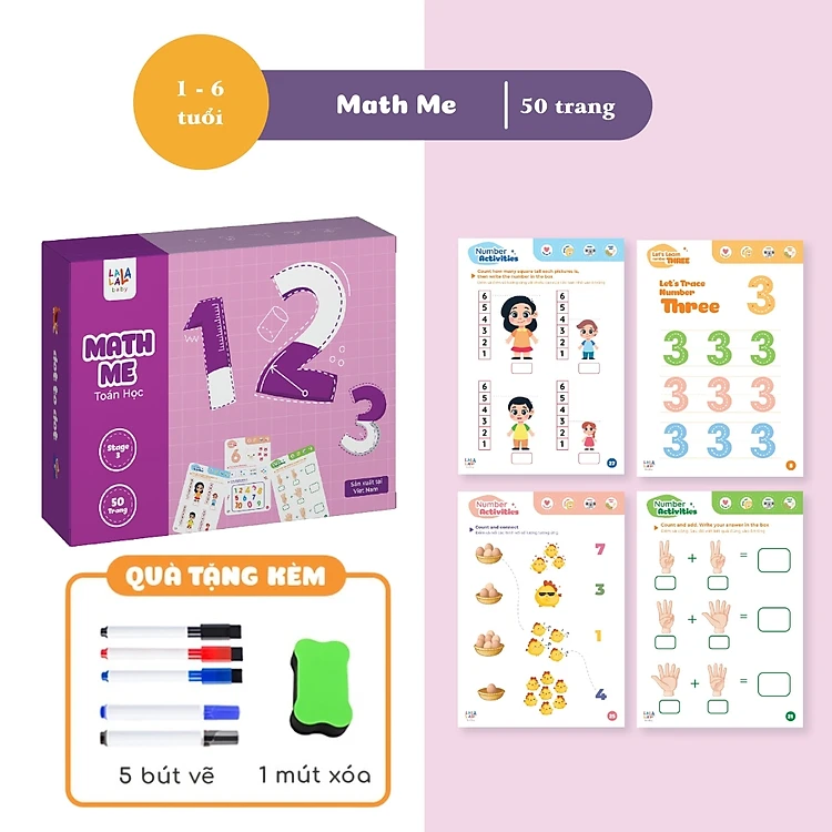 Học Liệu Giáo Dục Sớm Thông Minh Cho Bé Xóa Được tặng kèm Bút và Mút xóa - Lalala Baby
