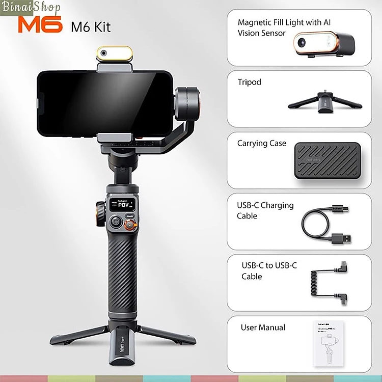 Hohem Isteady M6 / M6 KIT - Gimbal Chống Rung Cho Smartphone, Tích Hợp Cảm Biến AI, Tải Trọng 400g - Hàng chính hãng