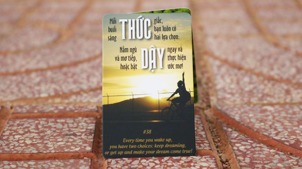 “Bộ Card được thiết kế rất đẹp, nội dung rất ý nghĩa. Em dùng nó để nhắc nhở bản thân mỗi ngày để có những suy nghĩ tích cực.” ~ Trần Nguyên Khải, ĐH Giao thông vận tải.