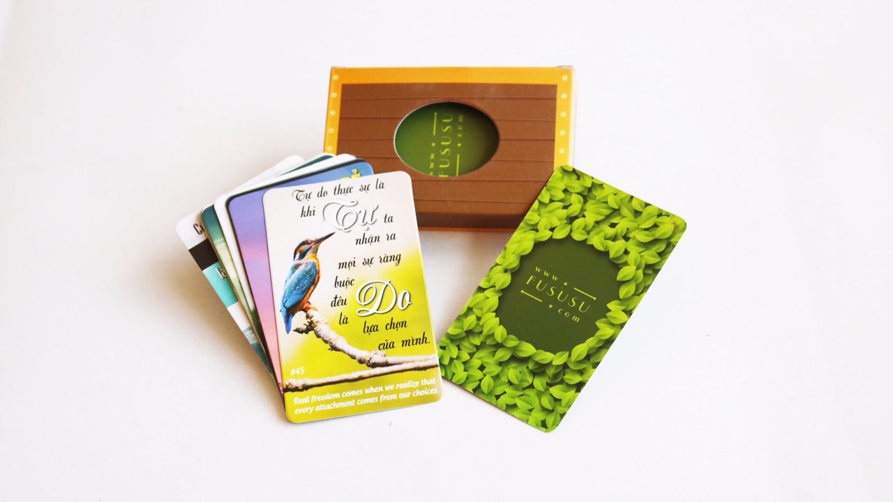 “Bộ thẻ rất tuyệt vời. Dùng để chiêm nghiệm khi đang bí bách hay khủng hoảng tinh thần, làm quà tặng cho bạn bè và em cháu đều được khen hết lời. Xin cảm ơn rất nhiều!” ~ bạn Nguyễn Thanh Hùng, Quản trị Web Phật Giáo Bạc Liêu