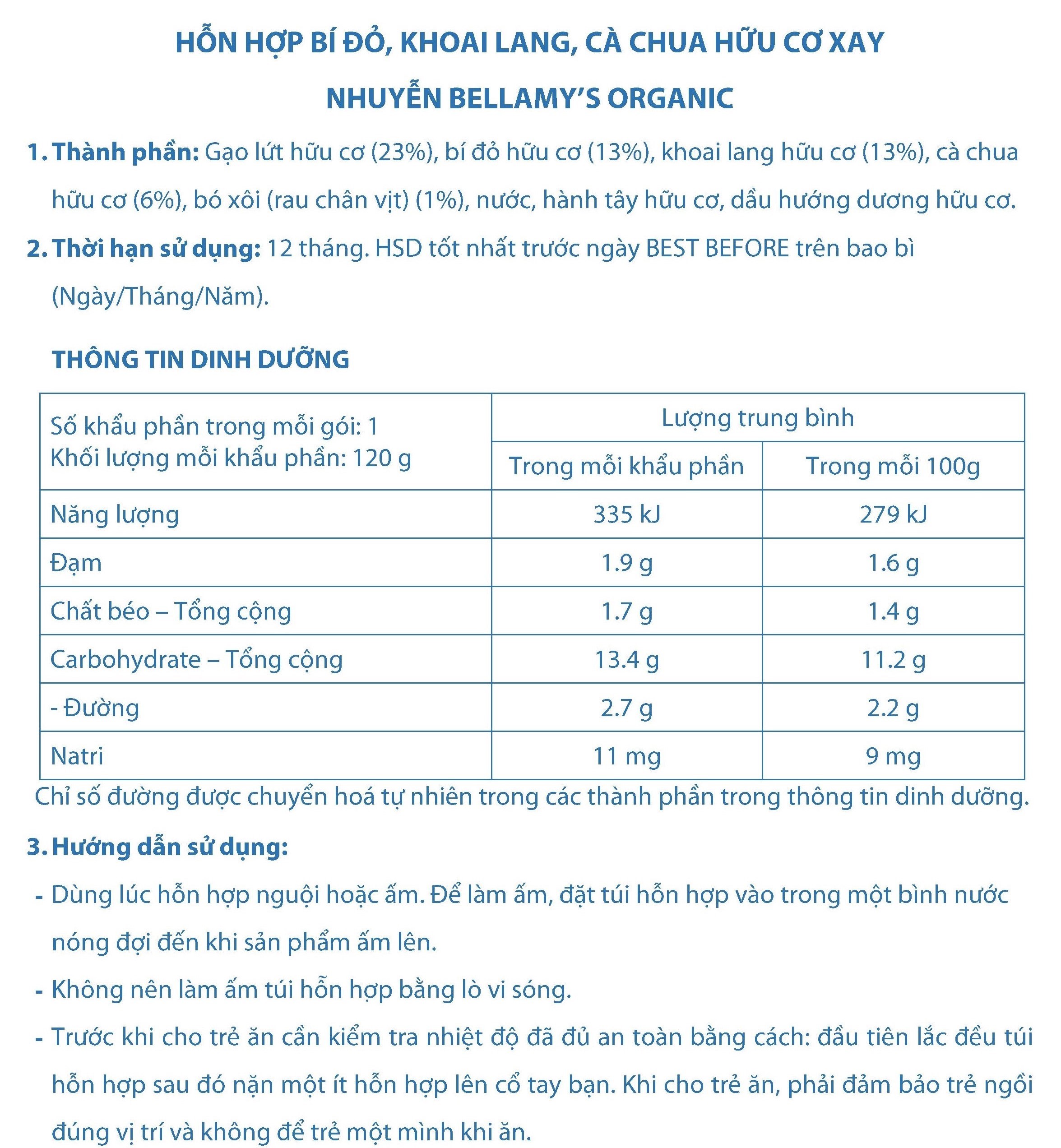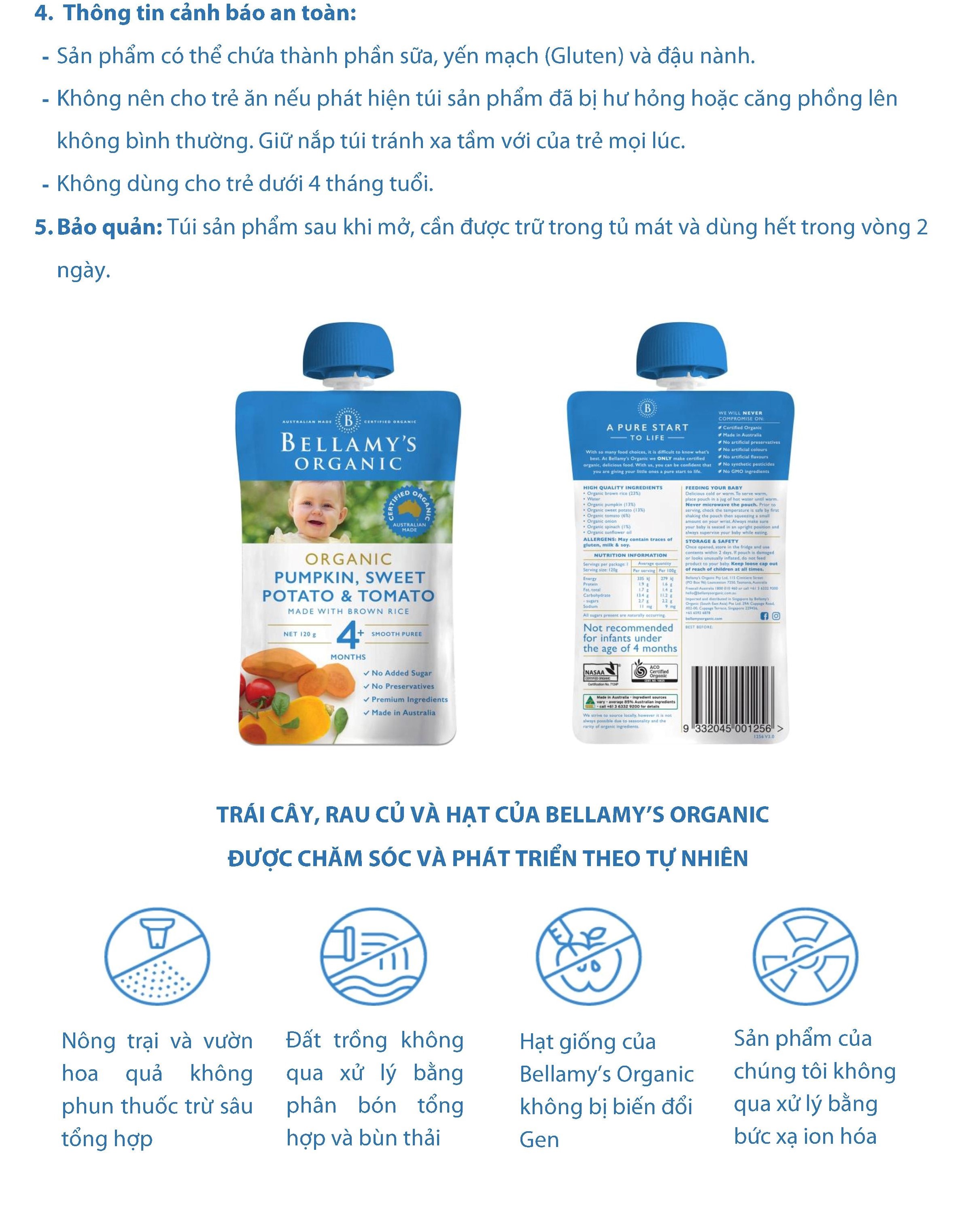 Hỗn Hợp Bí Đỏ, Khoai Lang, Cà Chua Hữu Cơ Xay Nhuyễn Bellamy's Organic