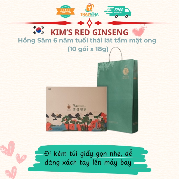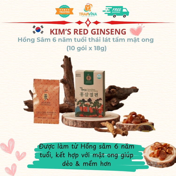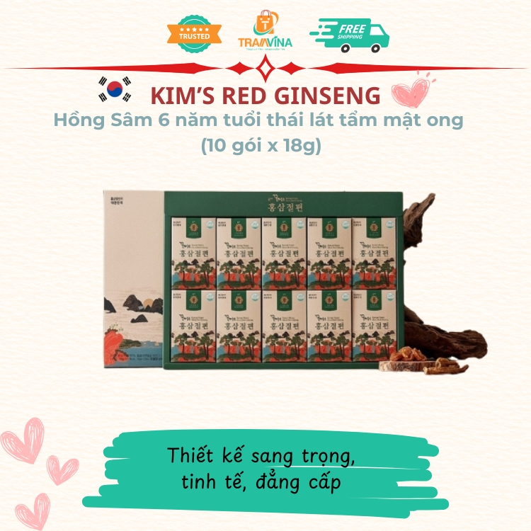 Kim's Red Ginseng - Hồng Sâm 6 năm tuổi thái lát tẩm mật ong (10 gói x 18g)