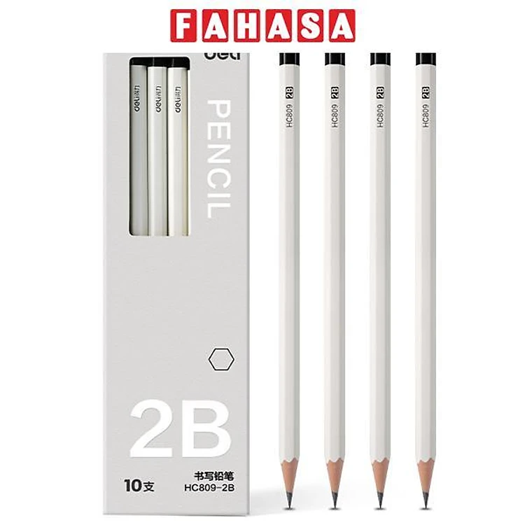 Hộp 10 Bút Chì Lục Giác - Deli HC809-2B - Màu Trắng
