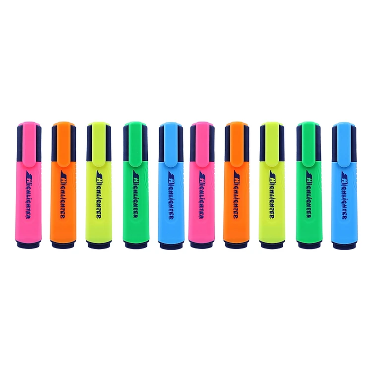 - Hộp 10 Bút Dạ Quang Thiên Long HL-012 (5 Màu) gồm 10 bút với 5 màu nổi bật: hồng, cam, vàng, xanh dương, xanh lá giúp bạn dễ dàng lựa chọn màu bút phù hợp với từng mục đích sử dụng khác nhau. Bút có kiểu dáng đơn giản, hiện đại, thân vuông nhìn khỏe mạnh rất thích hợp với nhân viên văn phòng, học sinh, sinh viên.