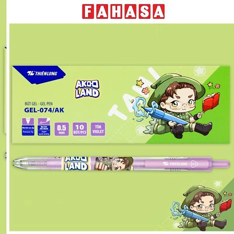 Hộp 10 Bút Gel 0.5 mm - Nhân Vật Akooland Tahi - Thiên Long - GEL-074/AK - Mực Tím