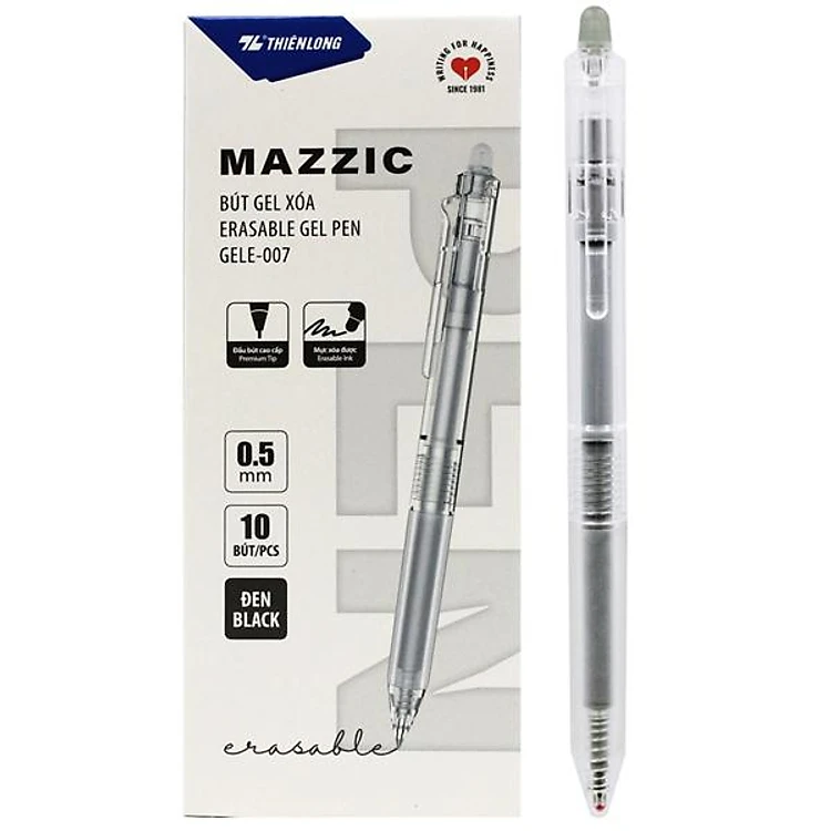 Hộp 10 Bút Gel Xóa Được 0.5 mm - Mazzic Thiên Long GELE-007 - Mực Đen