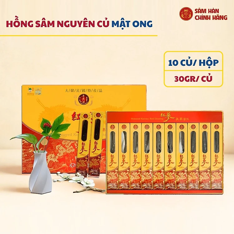 Hộp 10 Củ Hồng sâm 6 Tuổi tẩm mật ong Daedong Korea - Daedong Honeyed Korean Red Ginseng (300g)