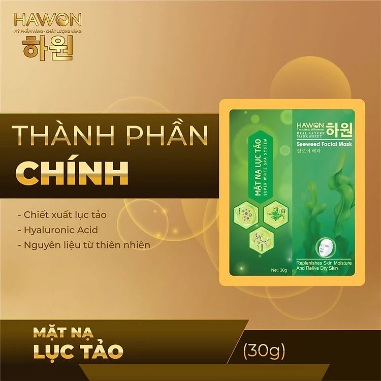 10 MiêngMặt Nạ Dưỡng Trắng Da Chiết Xuất Lục Tảo Seaweed Facial Mask HAWON