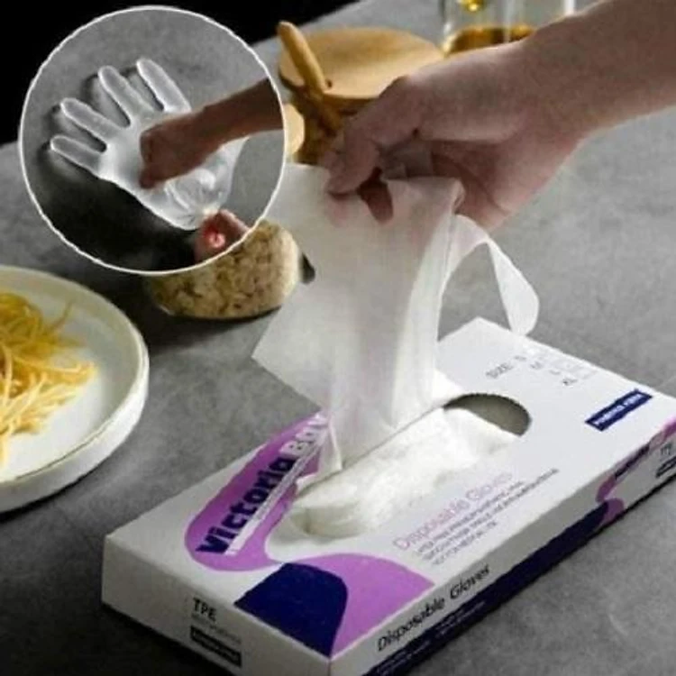 Hộp 100 găng tay cao su TPE Victoria Bay, bao tay siêu dai dùng 1 lần làm bếp nấu ăn vệ sinh