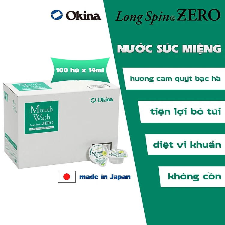 Nước súc miệng bỏ túi OKINA dòng LONG SPIN ZERO Nhật Bản hương Cam Quýt Bạc Hà không cồn – Hộp 100 hũ x 14ml