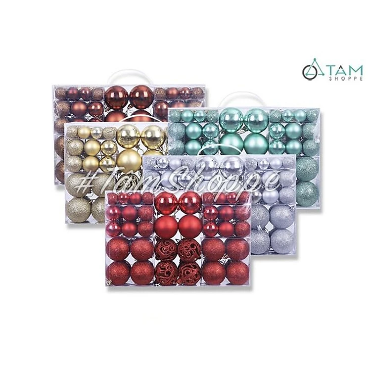 Hộp 100 trái châu Noel 4 kiểu Đk3-4-6cm treo cây thông Noel X-TRCH-20