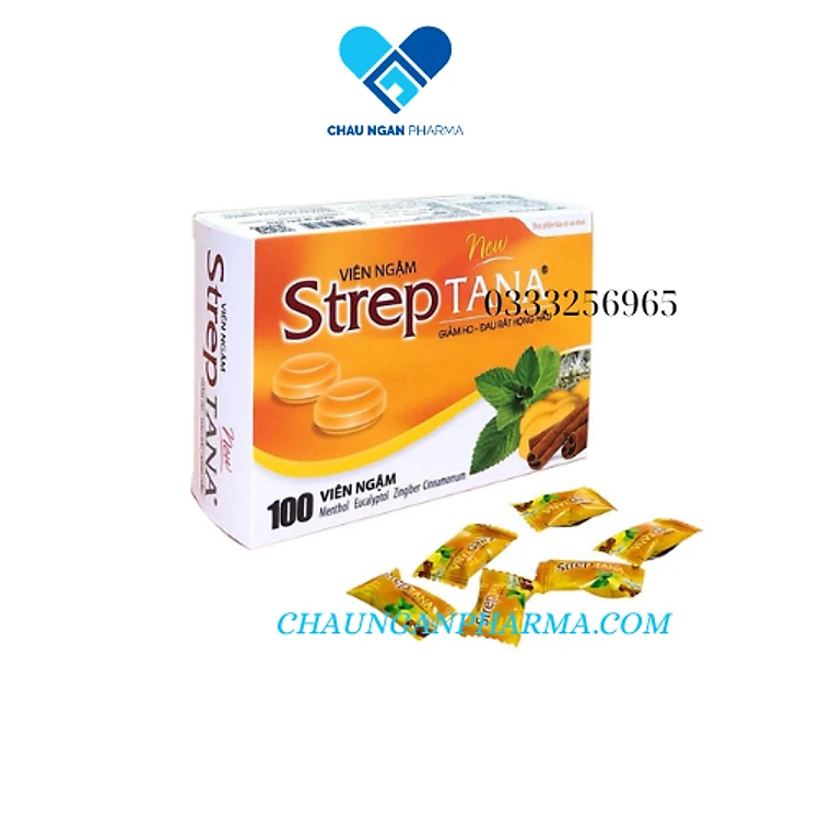 Hộp 100 viên ngậm ho thảo dược Streptana giảm ho , giảm ngứa cổ giảm viêm họng vị cam