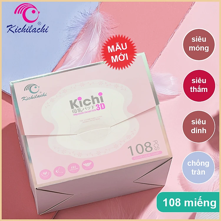 Miếng lót thấm sữa, hứng sữa Kichilachi 3D chính hãng siêu mềm, siêu mỏng, siêu dính, chống tràn, hộp 108 miếng, an toàn, thấm hút cực tốt mang lại cảm giác thoải mái, vừa vặn khi mặc với áo nịt ngực