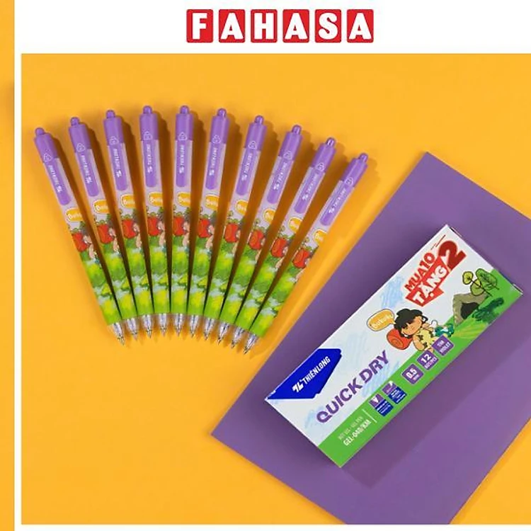 Hộp 12 Bút Gel Quick Dry 0.5 mm - Thiên Long GEL-040/KM - Mực Tím