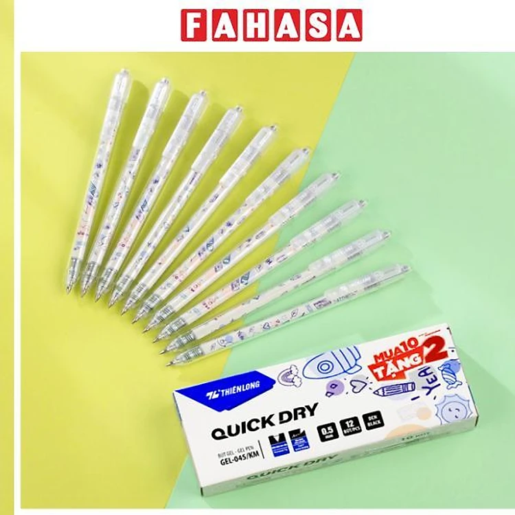 Hộp 12 Bút Gel Quick Dry 0.5 mm - Thiên Long GEL-045/KM - Mực Đen