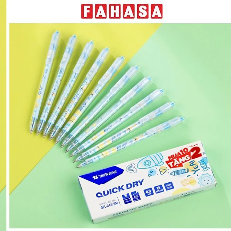 Hộp 12 Bút Gel Quick Dry 0.5 mm - Thiên Long GEL-045/KM - Mực Xanh