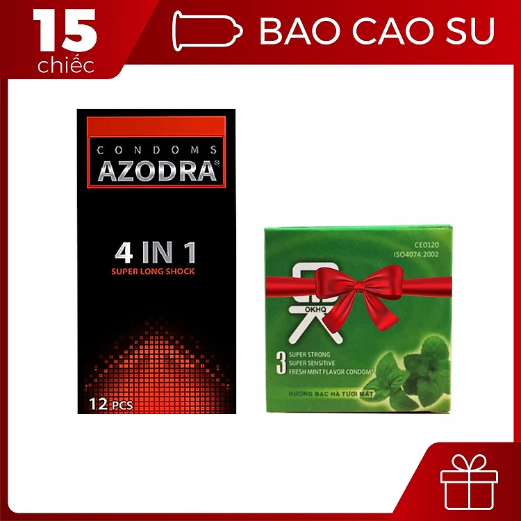 [Hộp 12 cái] Bao cao su Azodra 4 in 1 - Kéo dài thời gian kèm bao cao su OKHQ Bạc hà