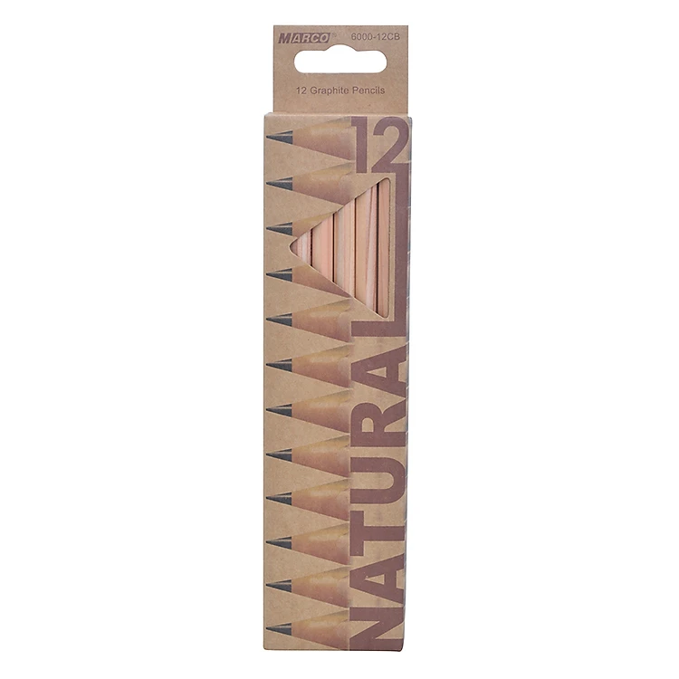 Hộp 12 Cây Bút Chì 2B Macro Thân Gỗ Mộc Thiên Nhiên 6000-12CB
