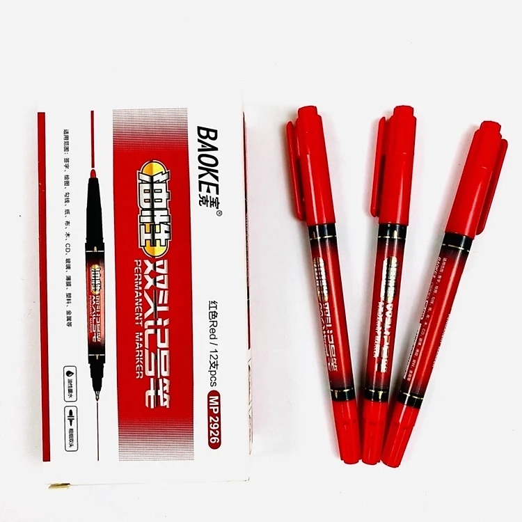 Hộp 12 cây bút dạ kính 2 đầu không xóa được MP2926 / Bút lông dầu Baoke 2926 bút tô viền đi nét