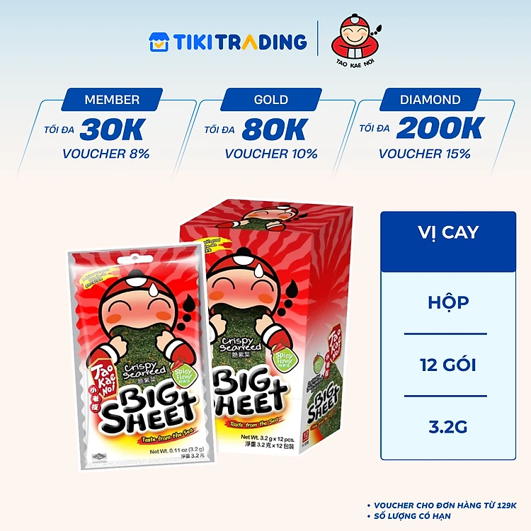 Hộp 12 Gói Rong biển TaoKaeNoi BIG SHEET Vị Cay