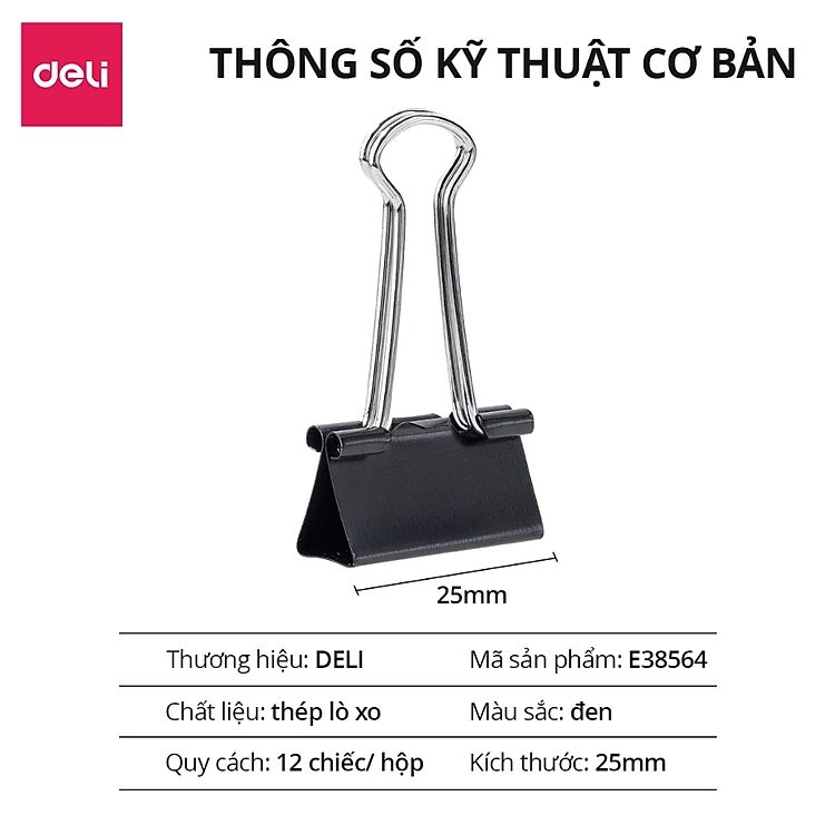 Hộp 12 Kẹp Bướm Deli Kẹp Tài Liêu Giấy Tờ Văn Phòng Phẩm Học Sinh Văn Phòng Nhiều Kích Thước Nhỏ Gọn Tiện Lợi Giá Rẻ