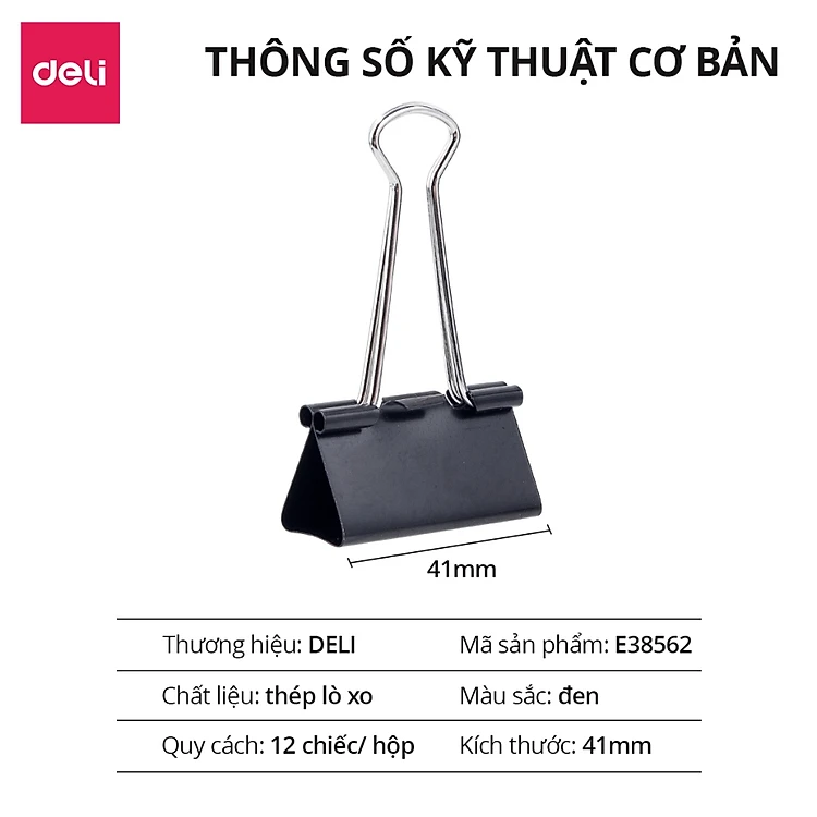 Hộp 12 Kẹp Bướm Deli Kẹp Tài Liêu Giấy Tờ Văn Phòng Phẩm Học Sinh Văn Phòng Nhiều Kích Thước Nhỏ Gọn Tiện Lợi Giá Rẻ