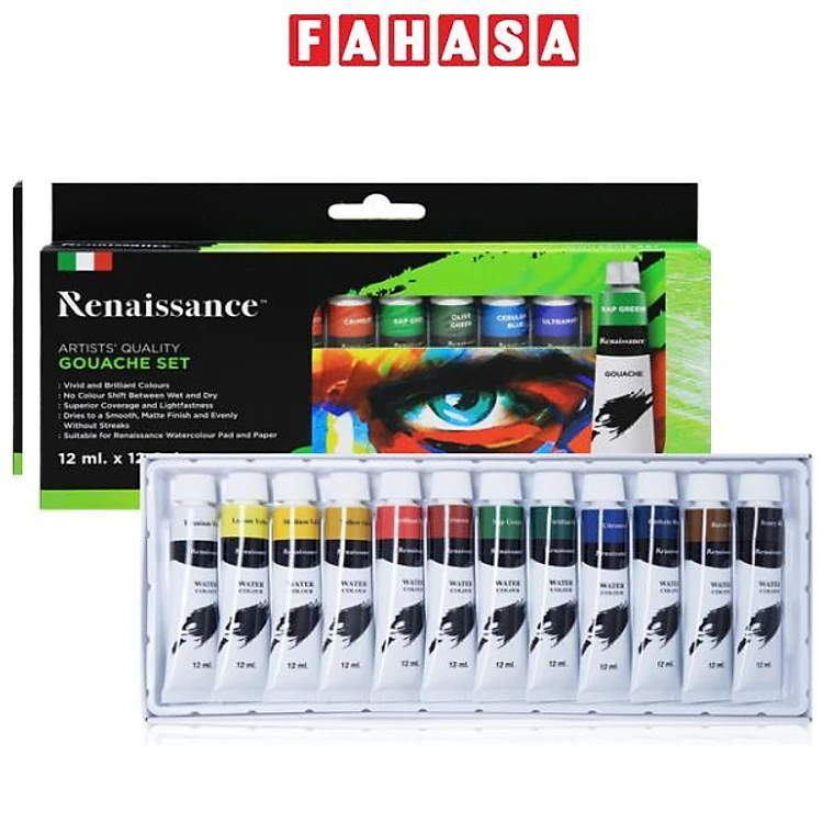 Hộp 12 Tuýp Màu Vẽ Gouache 12 Ml - Renaissance