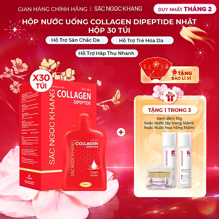 [NEW] Nước uống đẹp da Collagen Dipeptide Sắc Ngọc Khang tinh khiết nhập khẩu từ Nhật Bản, đạt chuẩn hàm lượng hấp thụ nhanh & vượt trội giúp trẻ hóa làn da - săn chắc và sáng mịn